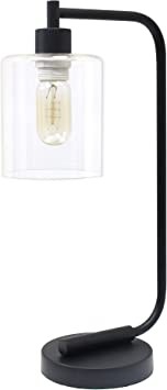 Simple Designs LD1036-BLK Black Bronze Vintage Style Industrial Iron Lamp Glass Shade Table Lamp